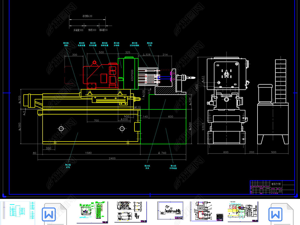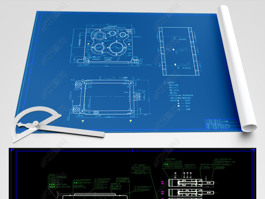 CAD车床主轴箱箱体右侧10-M8螺纹底孔