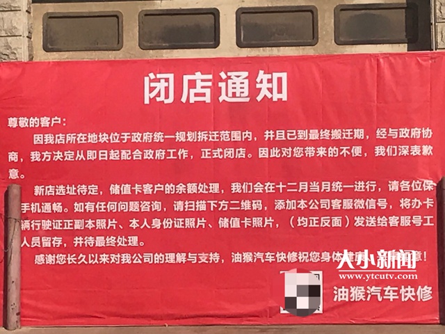 烟台一洗车店贴“闭店通知” 顾客:“给我换的洗车票咋不认了?”