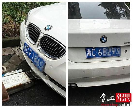 绍兴一辆宝马前后车牌不一致 还和小区里