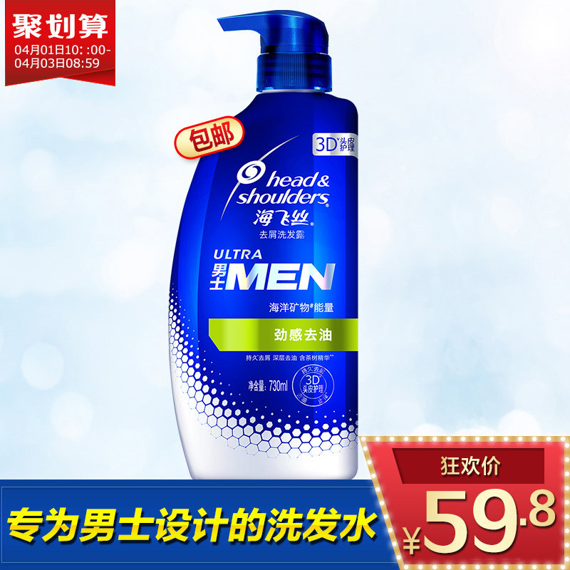 海飞丝男士洗发水-劲感去油730ml控油去屑