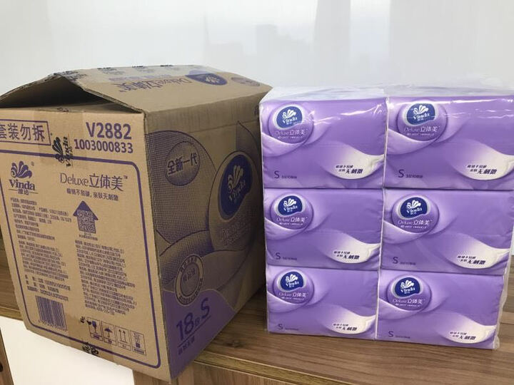 维达抽纸:“必须五星好评。速度杠杠的,昨天下单,今天就到了。这个是新款的抽纸,买来尝尝新。广告说是4D立体印花,” - 京东