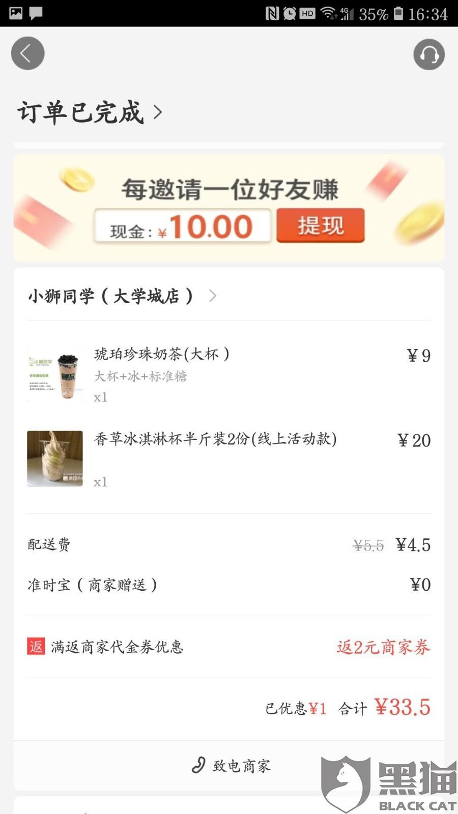 黑猫投诉:饿了么外卖质量问题拒绝退款,