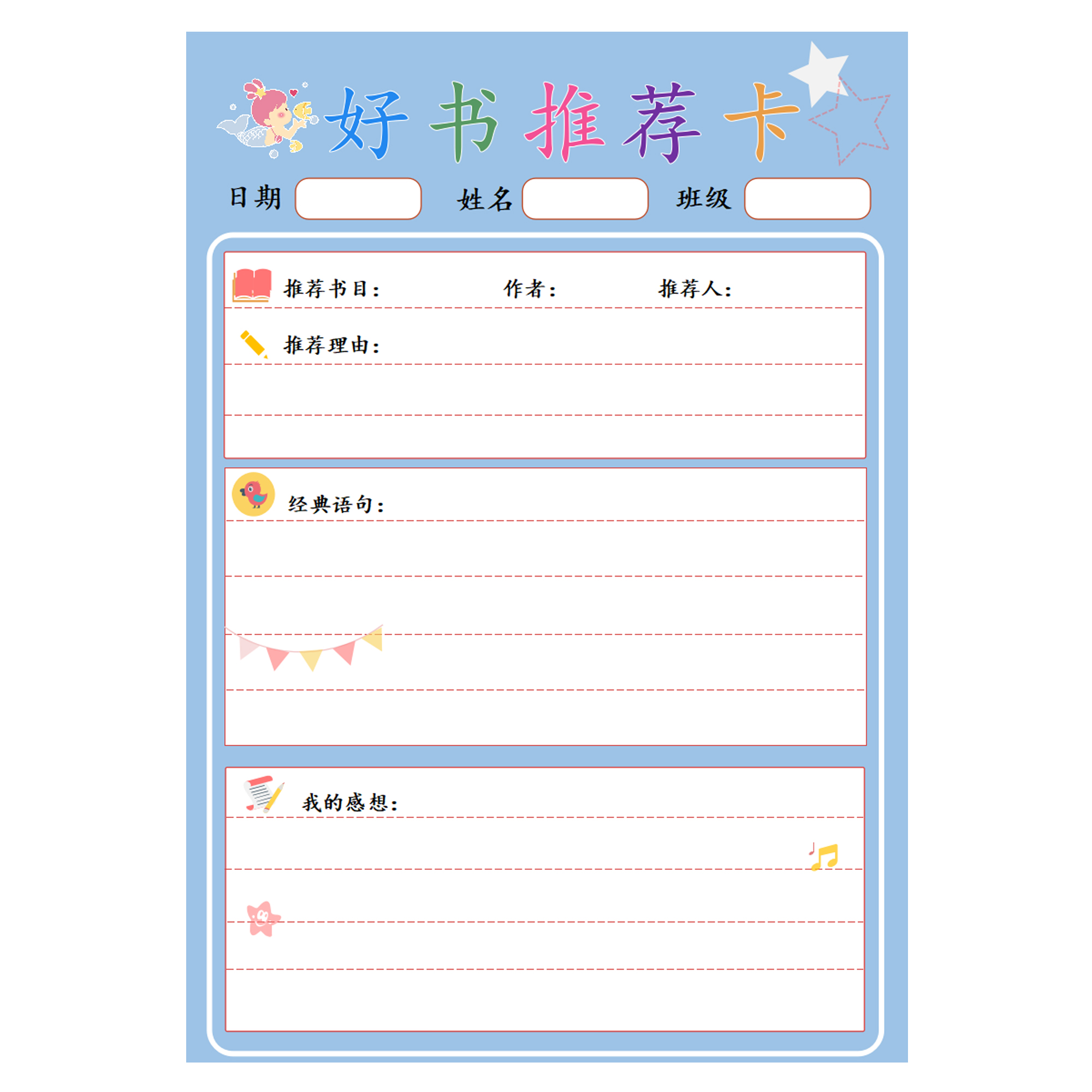 a4创意读书记录卡小学生儿童用一二三四年级阅读记录卡好书推荐卡