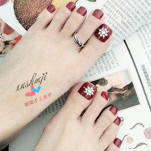孜甲花脚指甲贴片美甲贴酒红色少女可穿戴