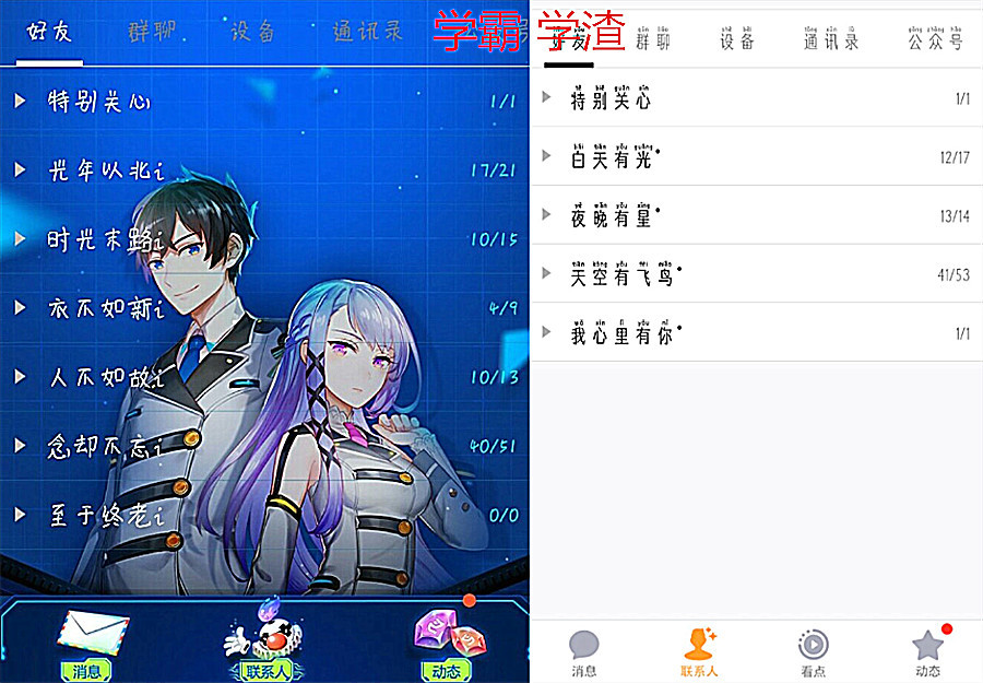 学霸QQ分组vs学渣QQ分组,不一样的天地,