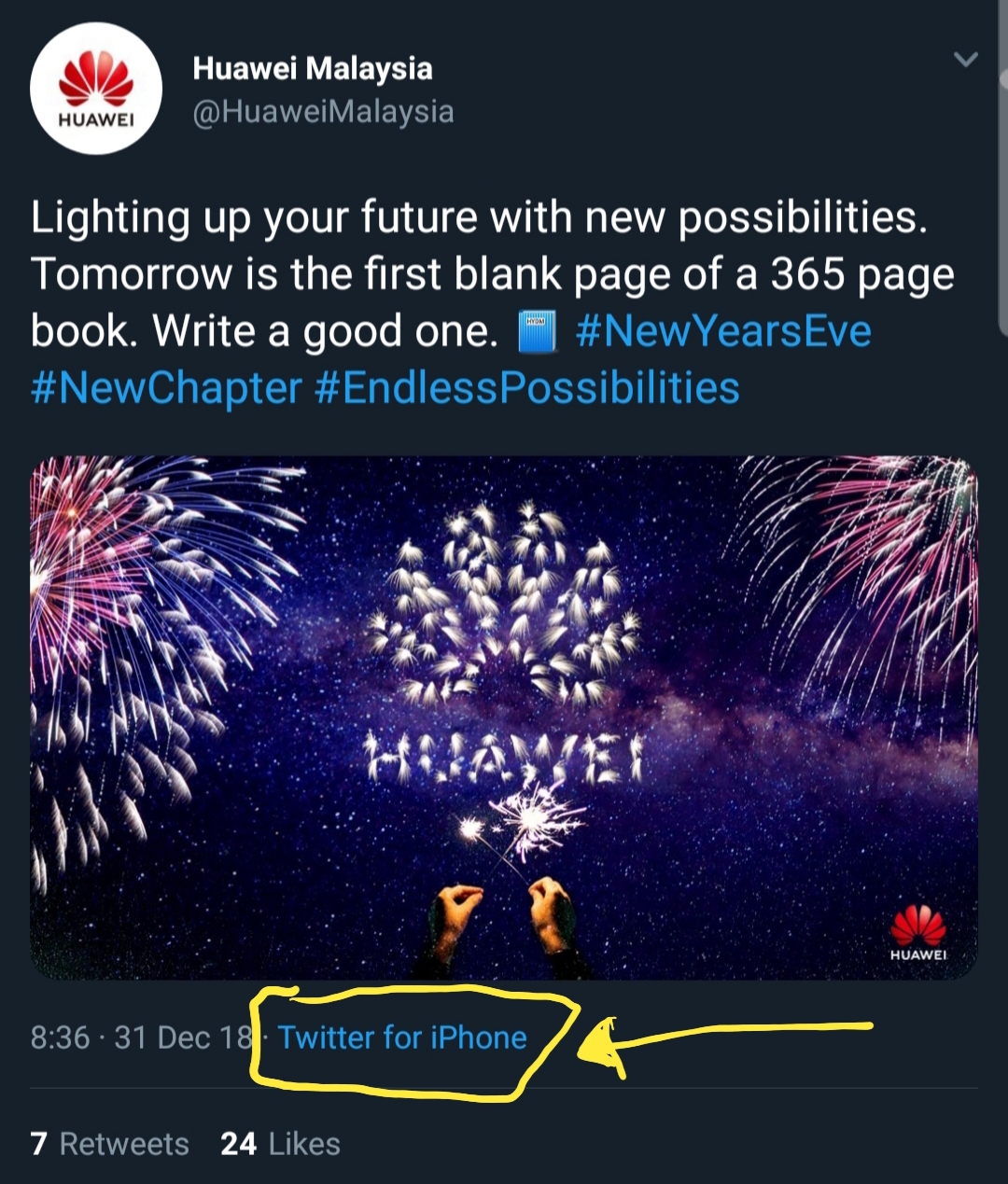 华为闹乌龙,用iphone发推特庆祝新年,苹果: