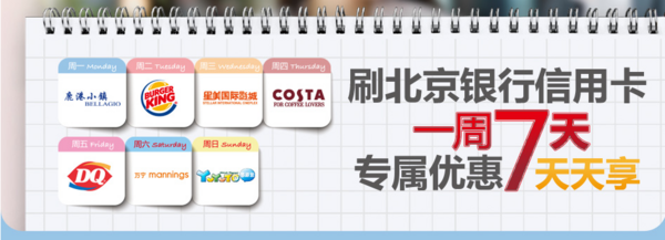 刷北京银行信用卡 一周7天,专属优惠天天享