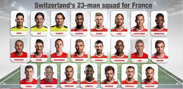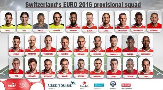 瑞士公布欧洲杯28人名单 莱斯特城铁腰
