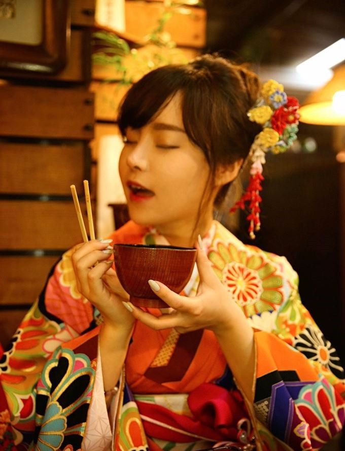 实拍穿和服的日本女人