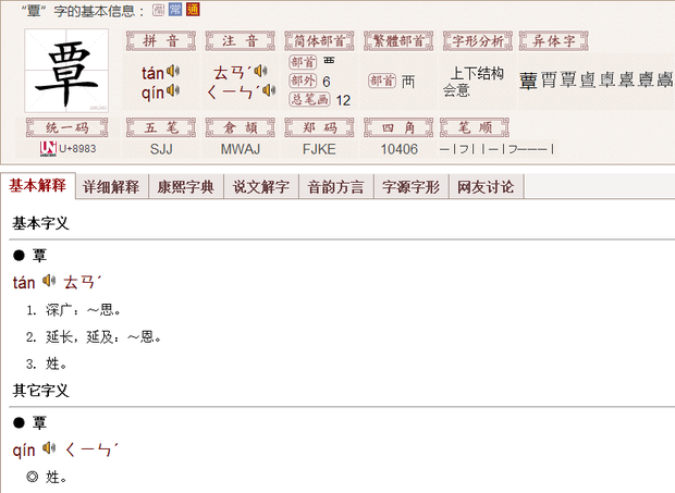覃的另一个读音是什么