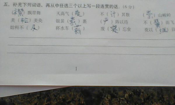 了四个词---襟飘带舞,天高气爽,不计其数。