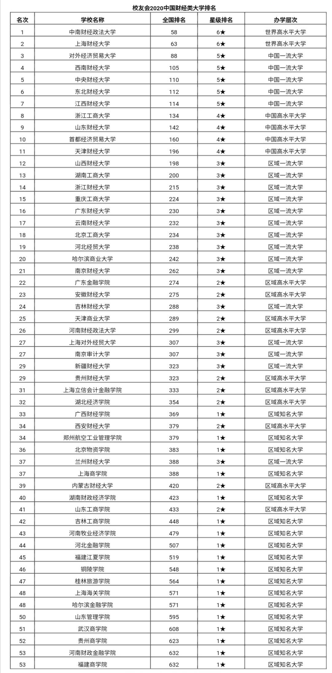 全国财经类大学排名