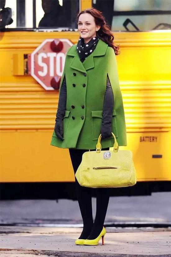 一样,这一顶绿色大帽子搭配服装也太高级了