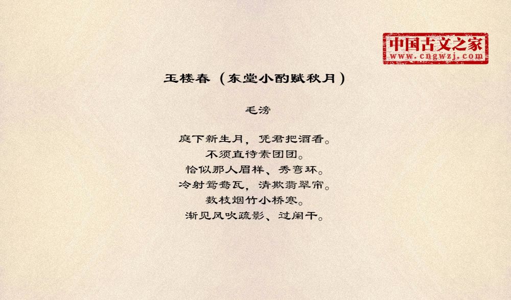 玉楼春(东堂小酌赋秋月)繁体版、繁体字版