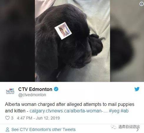 加拿大女子邮寄宠物,狗头上贴张邮票就塞