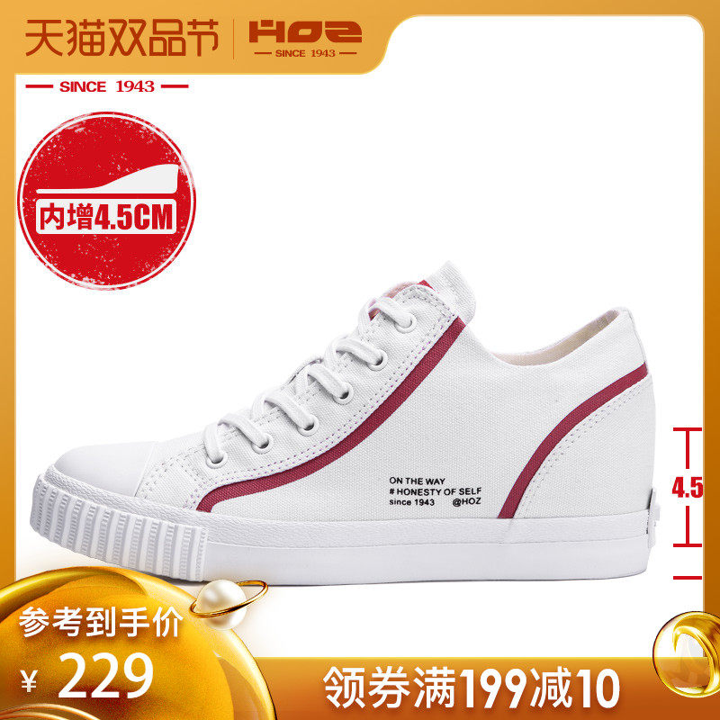 后街HOZ透气高帮内增高女士纯色帆布鞋