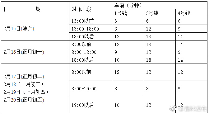 快收藏!长春地铁、轻轨春节期间运营时间表