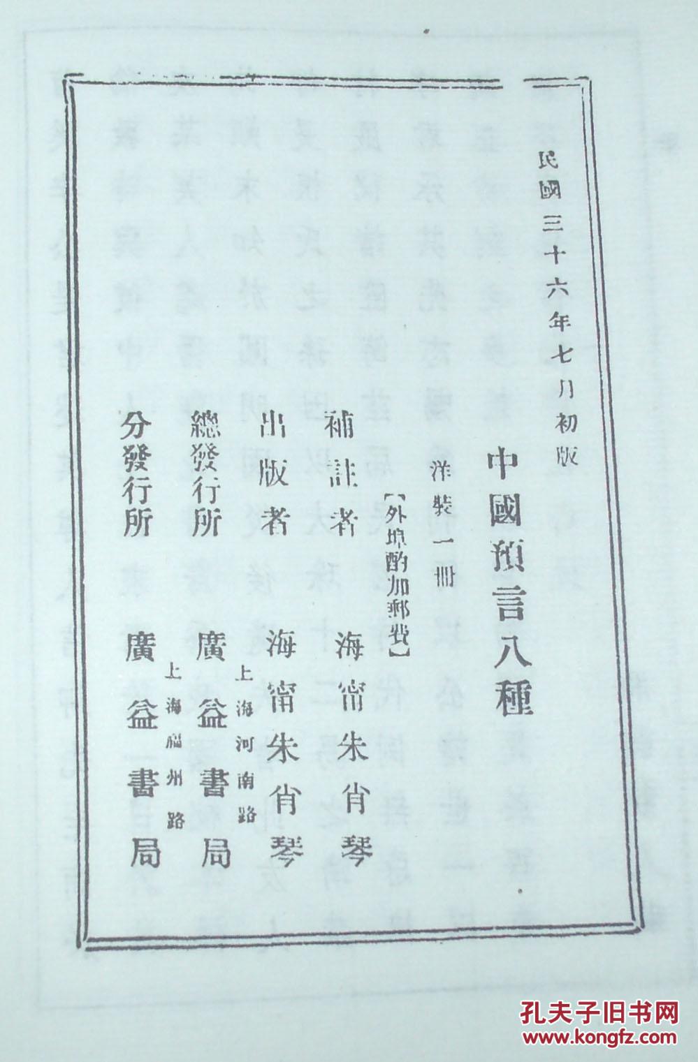中国预言八种(乾坤万年歌,马前课等,影印本,