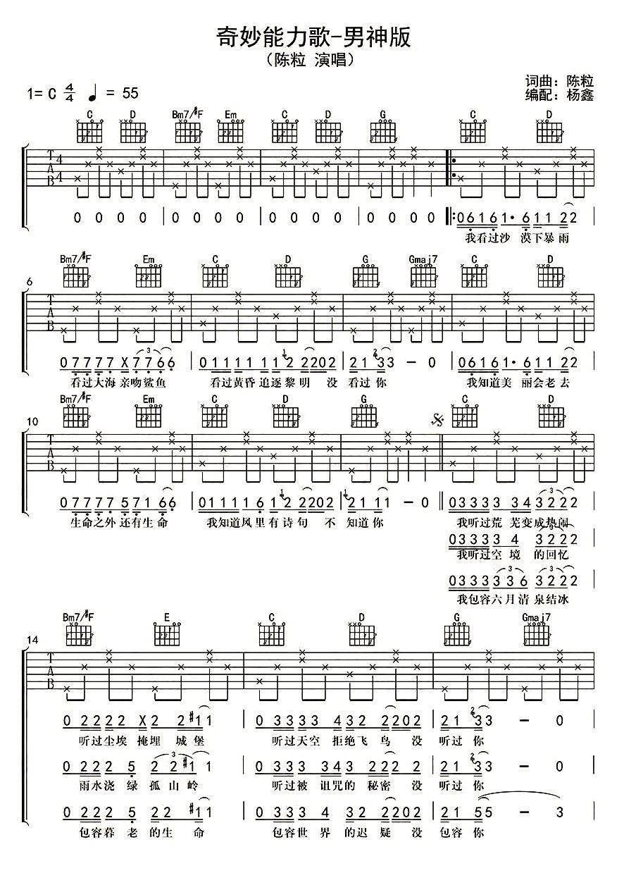 奇妙能力歌吉他谱_C调弹唱谱_陈粒吉他谱_图片谱高清版_易唱网