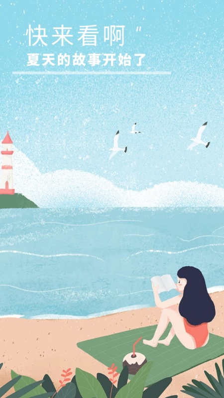 那个夏天卡通沙滩海风蓝色卡通壁纸