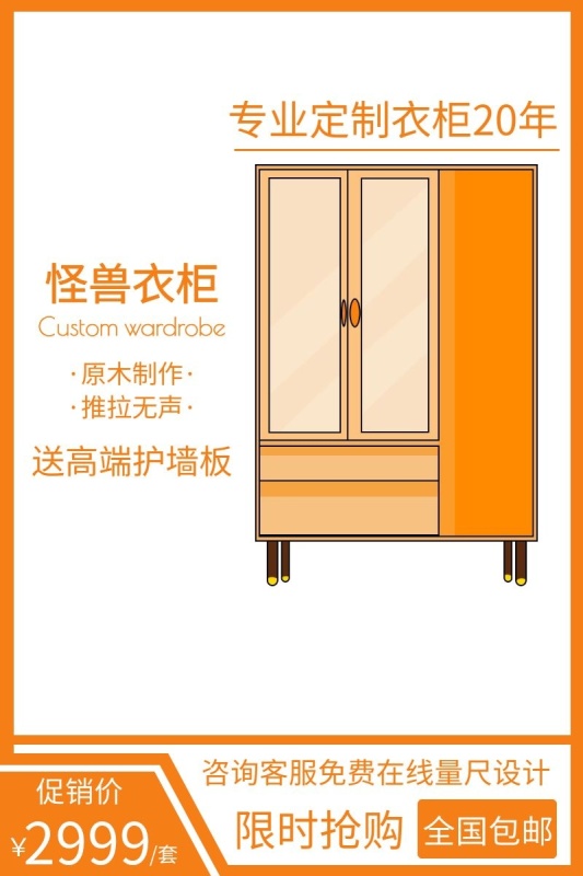 定制衣柜黄色时尚大气电商直通车