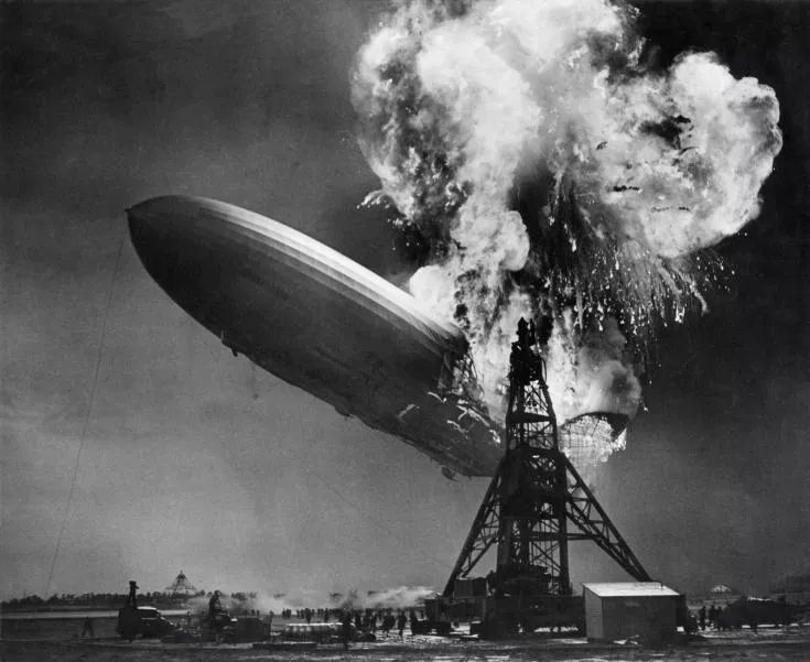 惨烈空难:德国齐柏林大型壮观银色飞艇兴登堡号焚毁事件