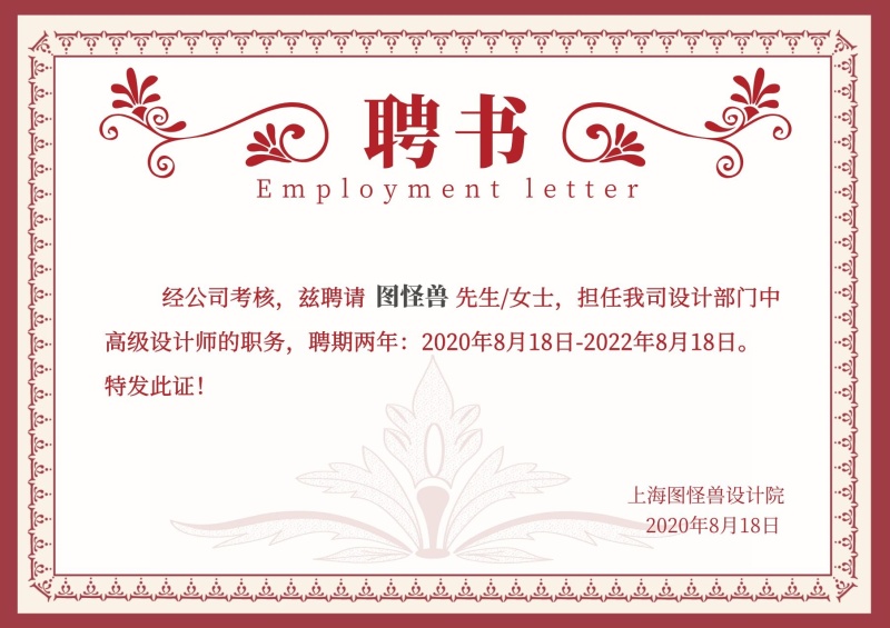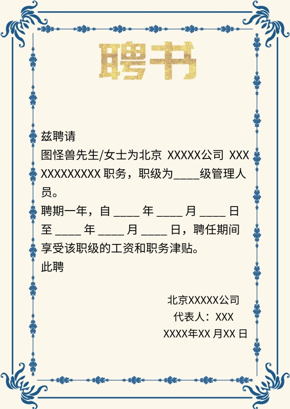 单位聘书