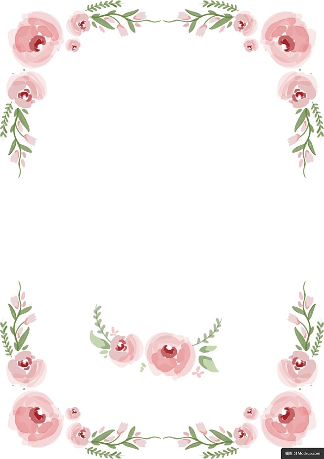手绘玫瑰花花藤结婚请柬边模板免扣png