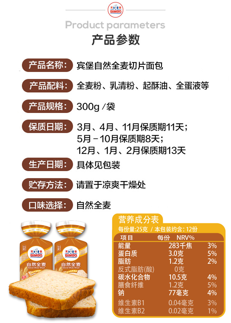 BIMBO宾堡本色皇家切片面包片 早餐 零食