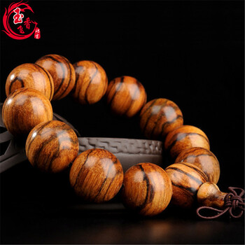 印尼极品虎斑纹沉香佛珠手链20mm男士