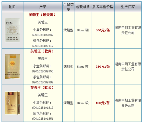 芙蓉王香烟价格表图-芙蓉王香烟价格表图