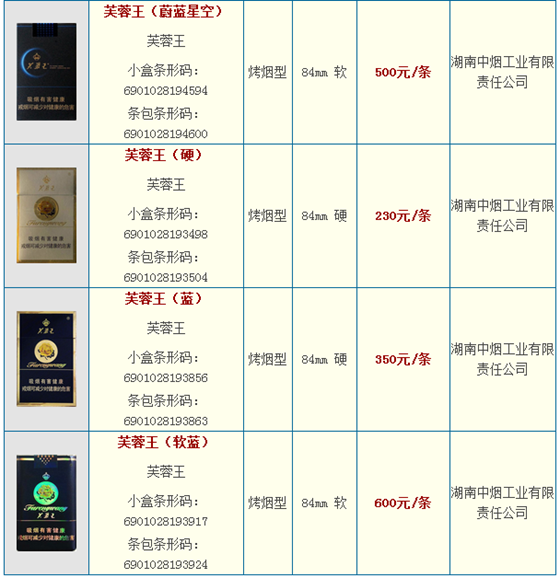 芙蓉王香烟价格表图-芙蓉王香烟价格表图2018芙蓉王多少钱一条?-综投网