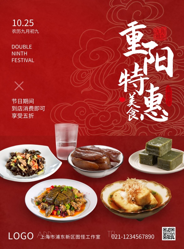 重阳节餐厅餐饮优惠促销活动简约印刷海报