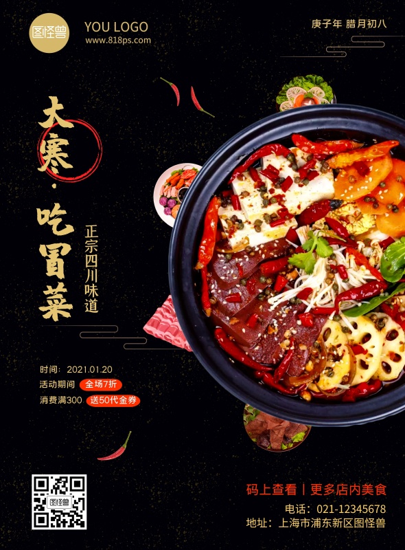 大寒节气冒菜店美食餐饮优惠活动宣传海报