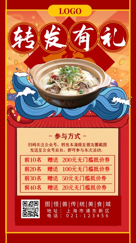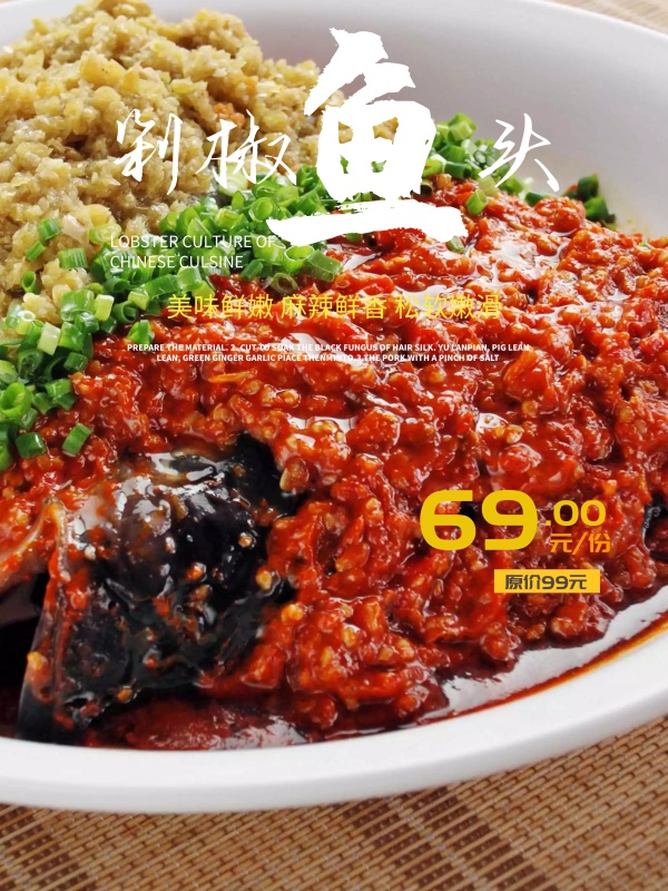 经典传统美食麻辣剁椒鱼头餐饮优惠促销海报