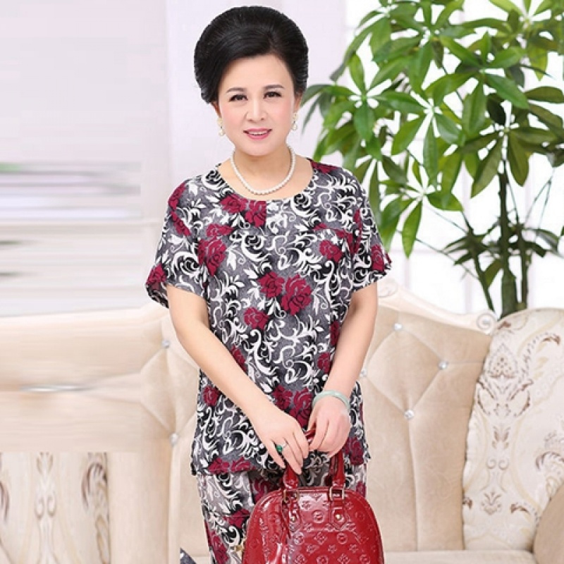 跑量中老人冰丝美人碎花上衣 中老年服装
