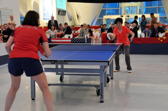 沃基纪念中美乒乓外交40周年 郑怀颖表演
