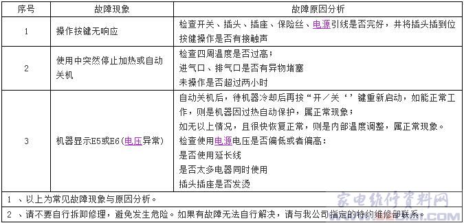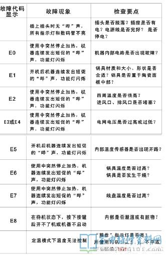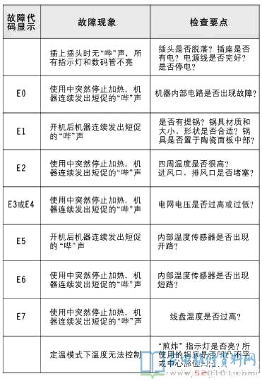 电磁炉常见故障代码表汇总图