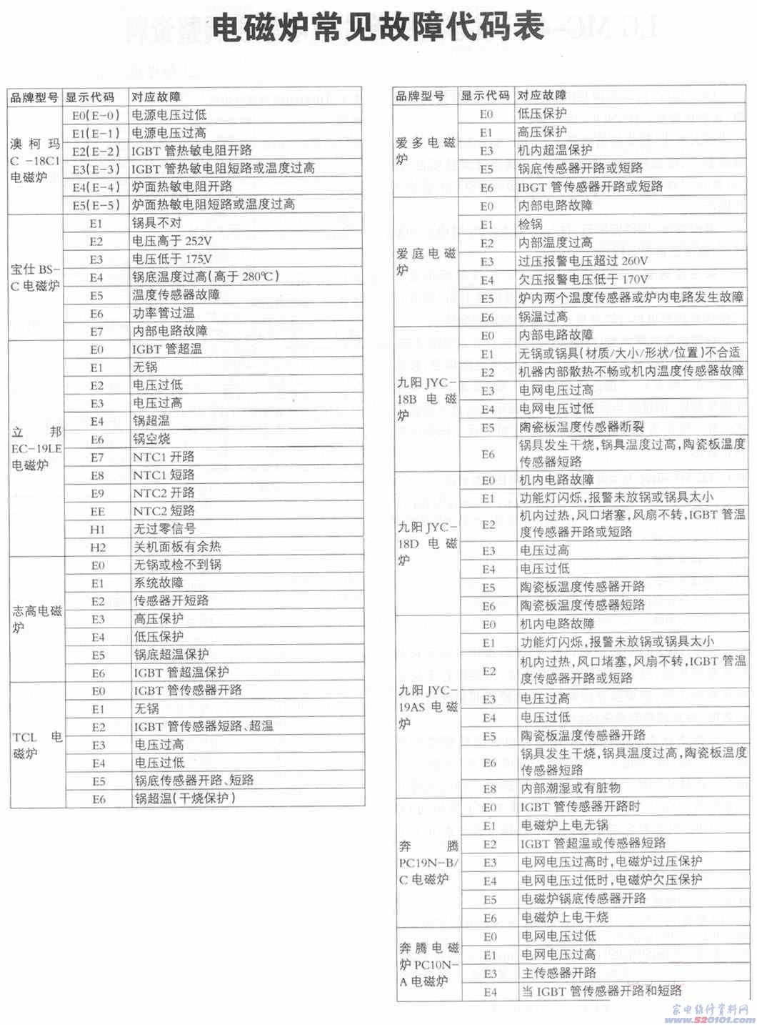 资料篇-电磁炉故障代码查寻