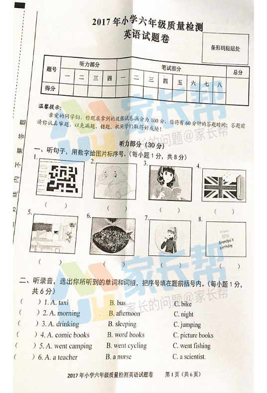 2017年五年级下学期英语期中测试卷