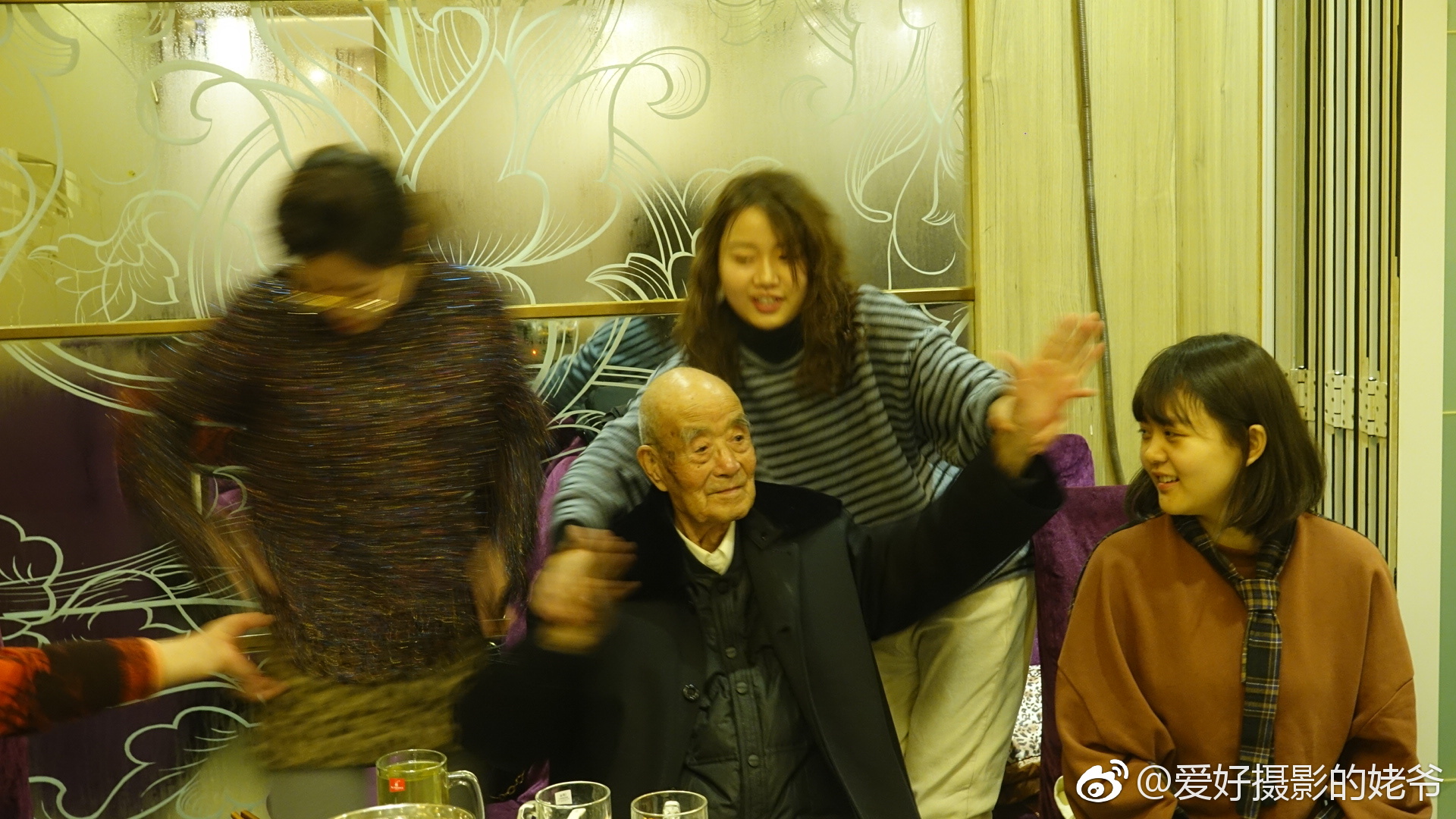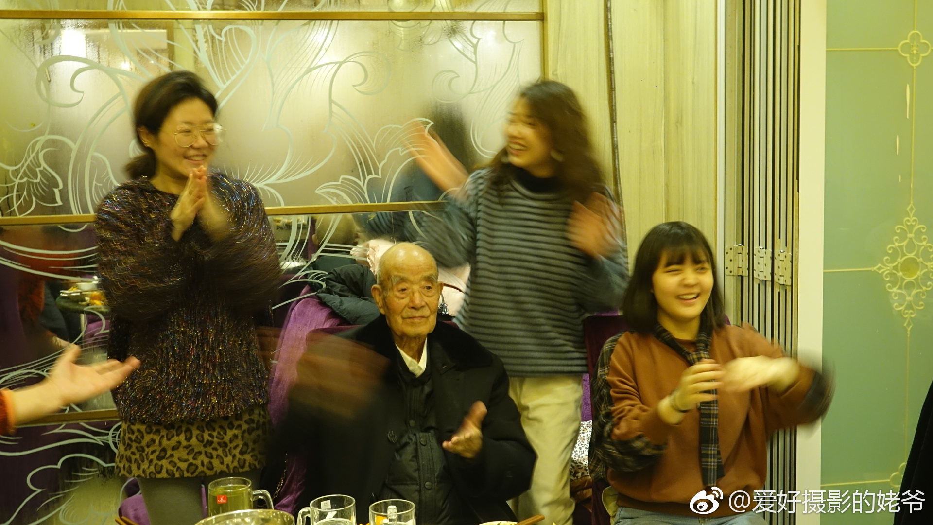 老泰山九十八寿宴,孙女们教手动舞。|老