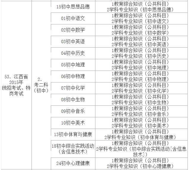 江西省2015年特岗教师招聘考试公告答案