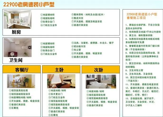 简介:套餐装修是一种按平米计价的装修模式,即把装修主材(包括墙砖、地砖、地板、橱柜、洁具、门及门套、墙面漆