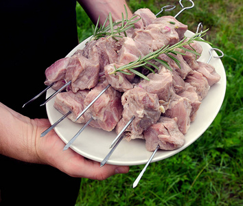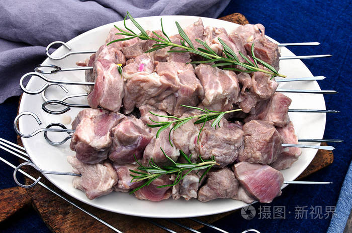 原料腌制烤肉串、 烧烤。选择性聚焦合影