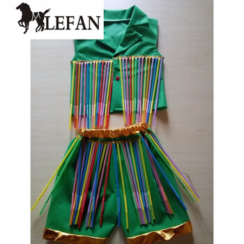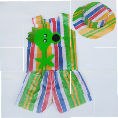 男款儿童环保演出服手工制作纸质塑料袋吸管材料表演服走秀服装绿色100cm