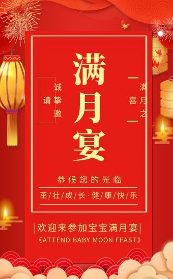 国风宝宝满月酒宴满月之喜请柬H5模板