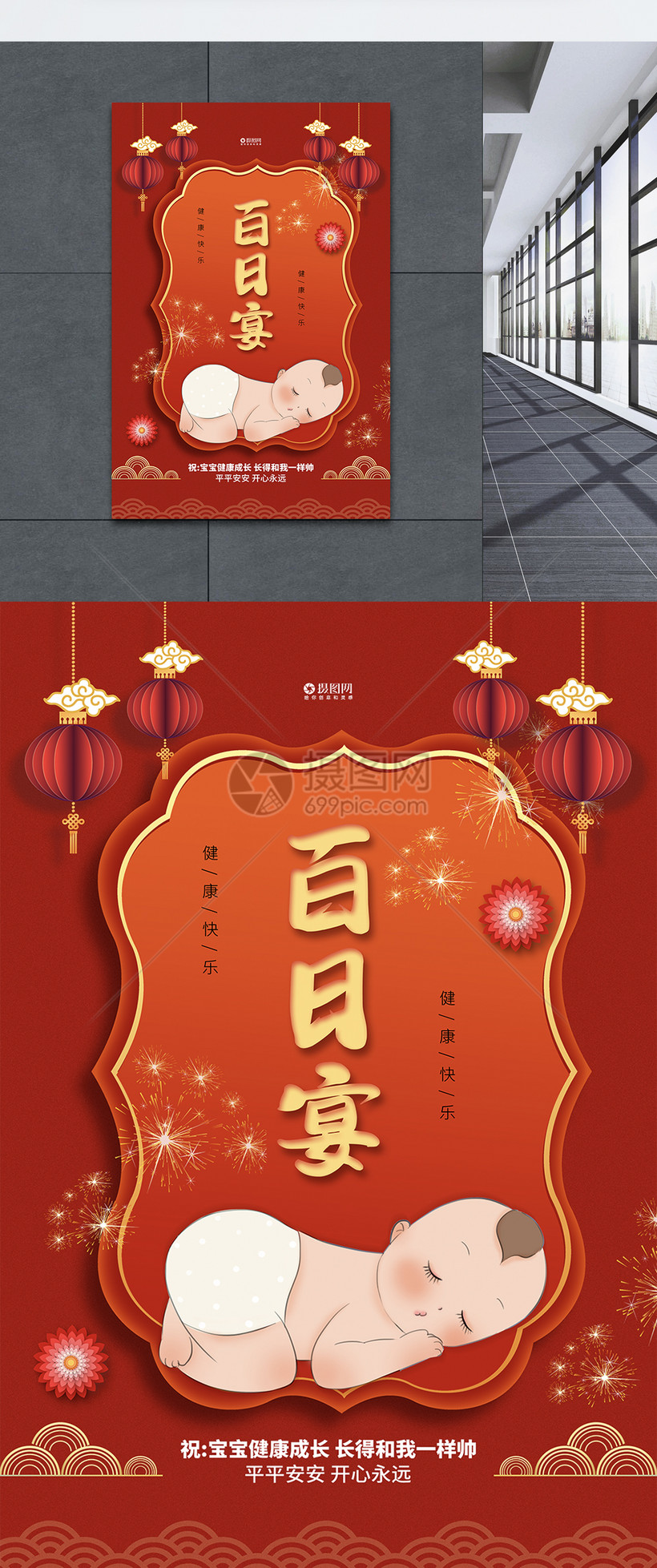 喜庆宝宝百日宴满月酒宴海报