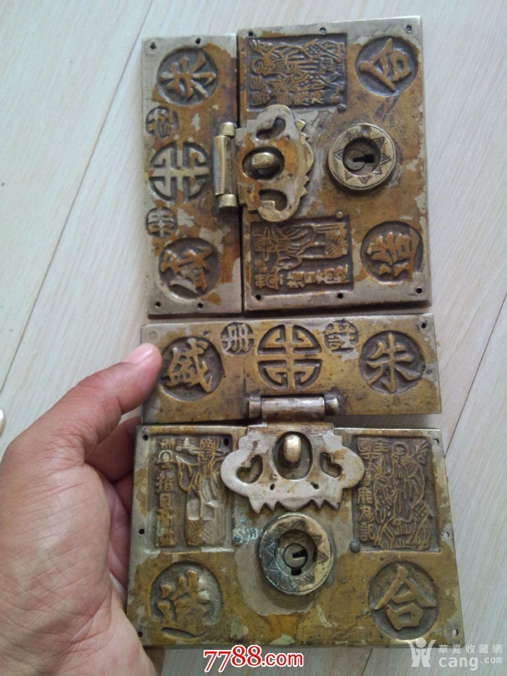 清末白铜朱盛和记人物纹面叶锁两套同售