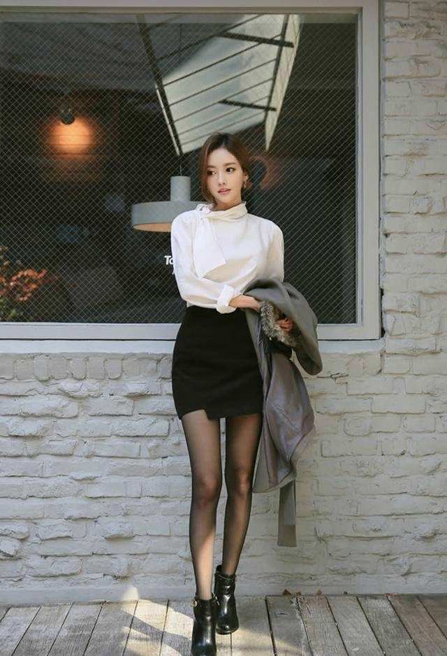 孙允珠黑色衬衣式短裙 上班这件OL风职业装足够了
