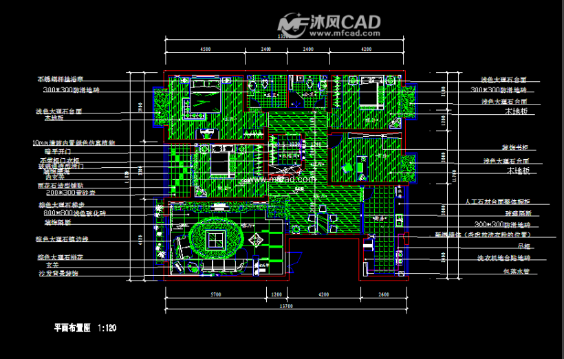 经典三室大户型家装cad设计施工图